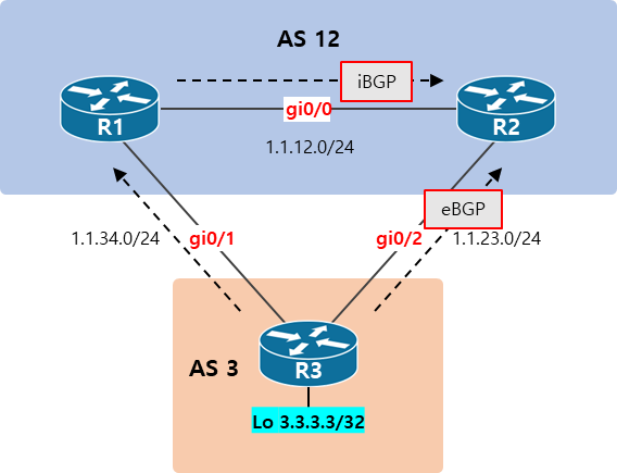 - 외부에서 배운 경로가 아니므로, BGP가 참조할 Next Hop 정보가 존재하지 않습니다.