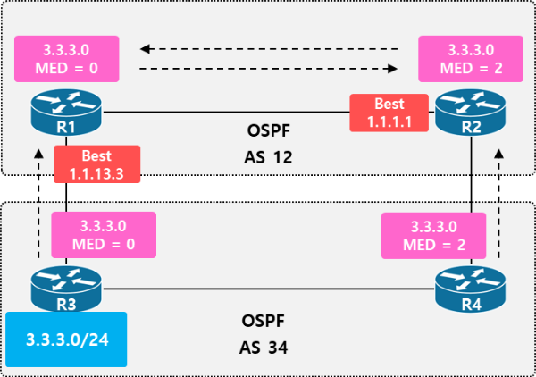 | Local Pref | 100 | 기본 로컬 프리퍼런스 값 |